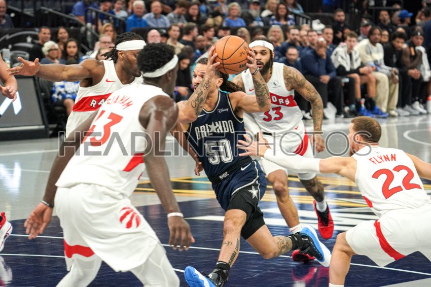 Orlando, Florida, USA, November 21, 2023, Orlando Magic guard Cole Anthony #50 runs pass Toronto Raptors players at the Amway Center. (Photo Credit: Marty Jean-Louis)