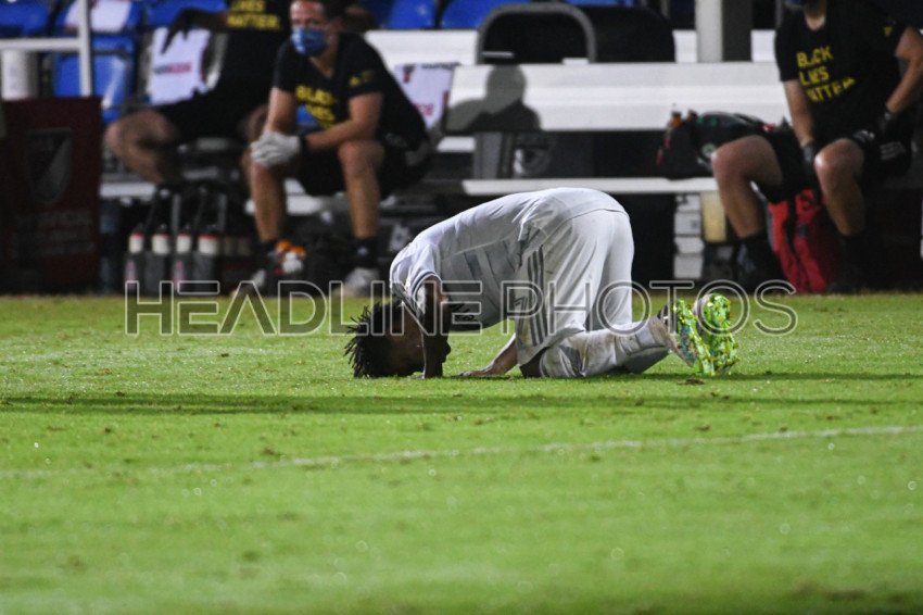 Los Angeles Football Club midfielder Blessing, Latif #7 celebrate after scoring during the MLS is Back Tournament at ESPN Wild World of Sports in Orlando Florida on Monday July 27, 2020. Photo Credit: Marty Jean-Louis