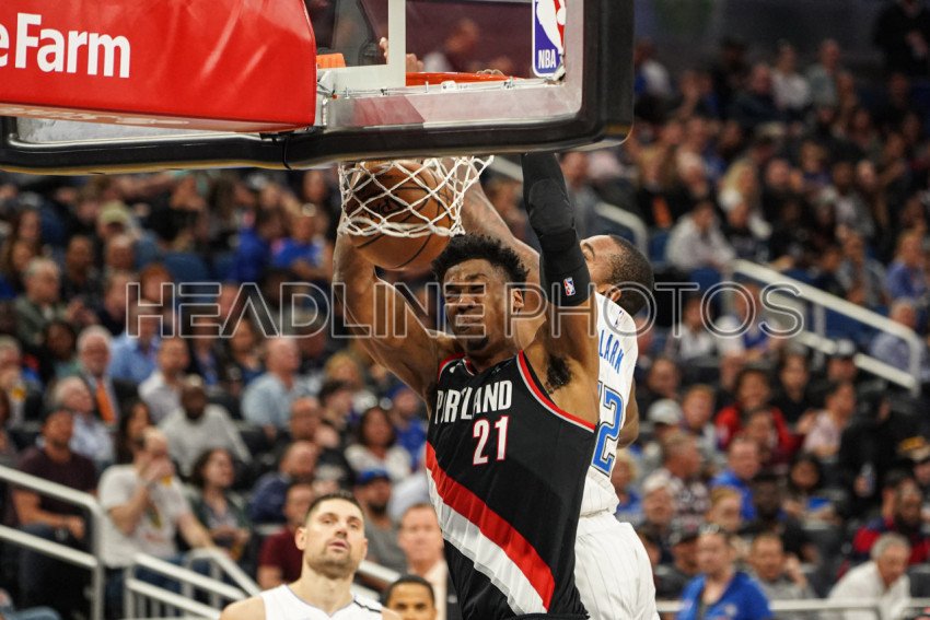 Portland Traillbazers player Hassan Whiteside #21 makes a dunk during the game at the Amway Center in Orlando Florida on Monday March 2, 2020. Photo Credit: Marty Jean-Louis
