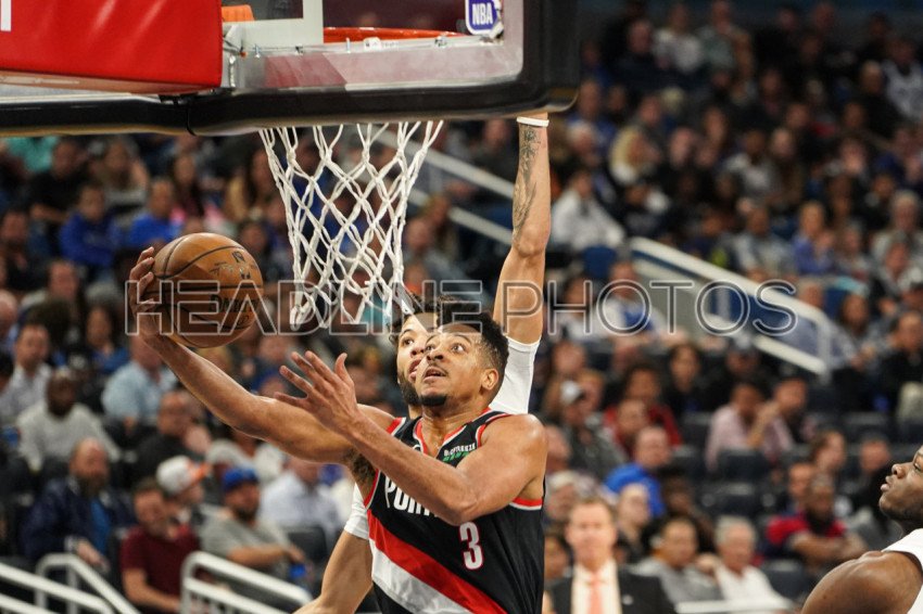 Portland Traillblazers player CJ Mccollum #3 attempt to make a layup during the game at the Amway Center in Orlando Florida on Monday March 2, 2020. Photo Credit: Marty Jean-Louis