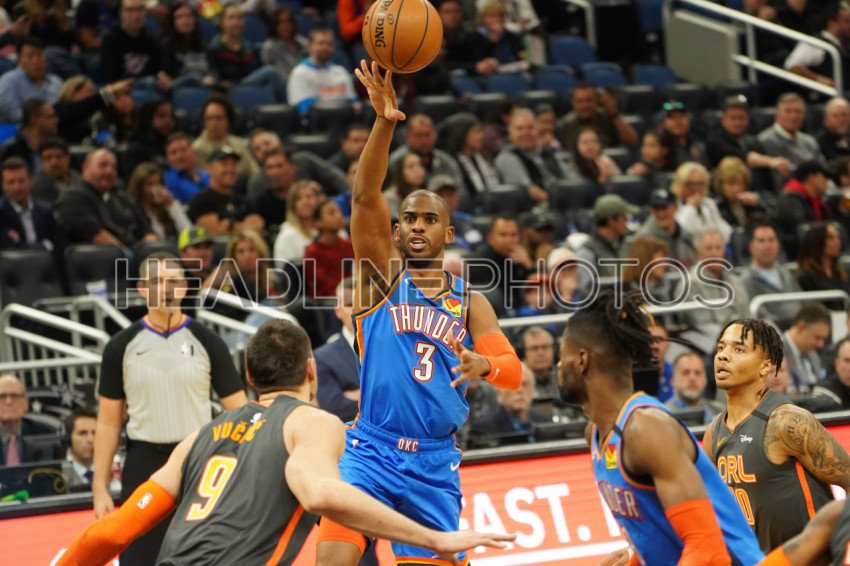 Oklahoma Thunder player Chris Paul attempt to make a bastket at the Amway Center in Orlando Florida on Wednesday January 22, 2020. Photo Credit: Marty Jean-Louis