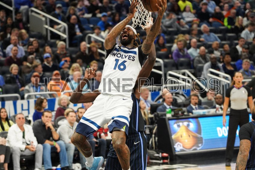 Minnesota Timberwolves player James Johnson #16 makes a layup at the Amway Center on Friday February 28, 2020 in Orlando Florida. Photo Credit: Marty Jean-Louis