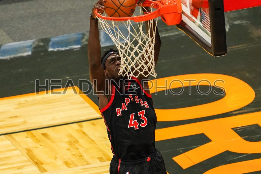 Orlando, Florida, USA, February 2, 2021, Toronto Rapters player Pascal Siakam #43 makes a dunk during the game against the Orlando Magic at the Amway Center (Photo Credit: Marty Jean-Louis)