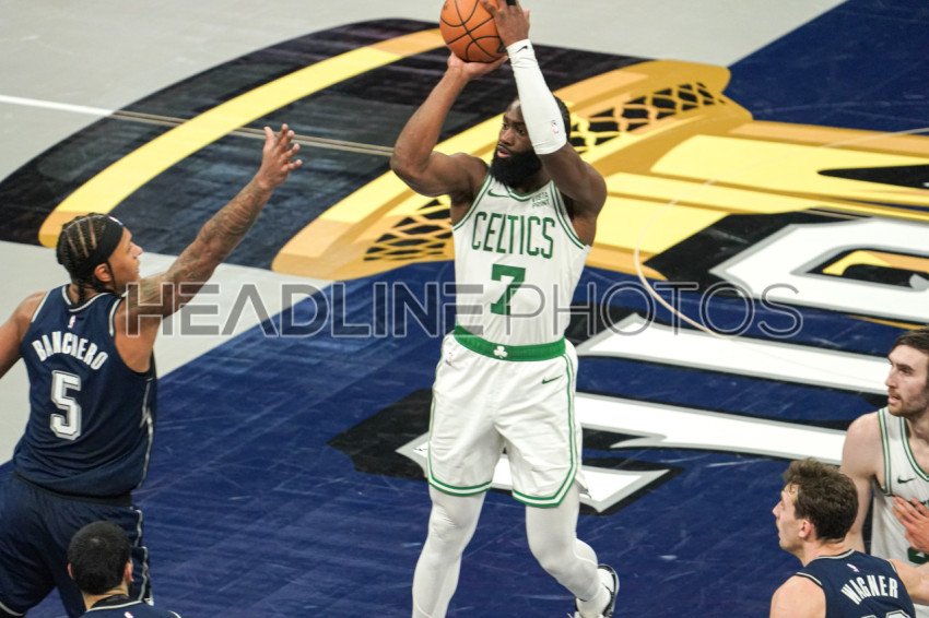Orlando, Florida, USA, November 24, 2023, Boston Celtics guard Jaylen Brown #7 takes a shot at the Amway Center. (Photo Credit: Marty Jean-Louis)