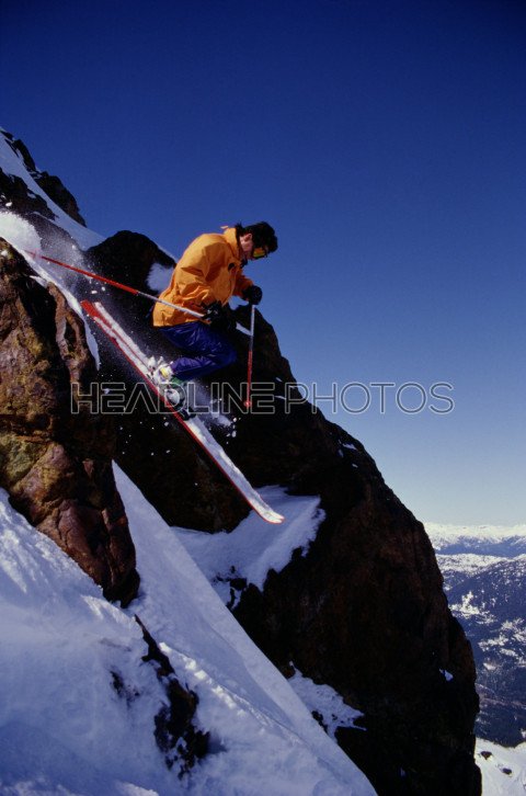 Expert Skier Suspended In Mid-Air