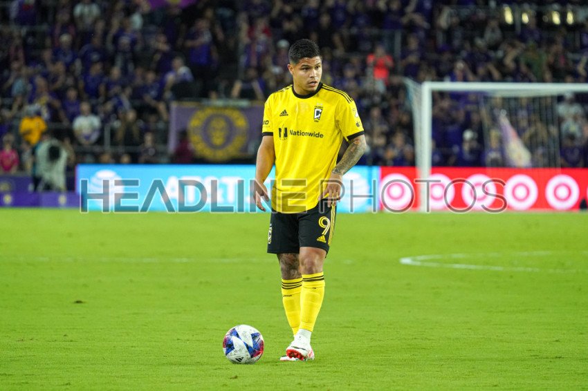 Orlando, Florida, USA, November 25, 2023, Columbus Crew player Cucho Hernandez #9 readies to make a free kick at Exploria Stadium. (Photo Credit: Marty Jean-Louis)