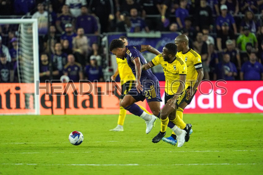 Orlando, Florida, USA, November 25, 2023, Orlando City SC player Junior Urso #21 rns pass Columbus Crew players in the second half at Exploria Stadium. (Photo Credit: Marty Jean-Louis)
