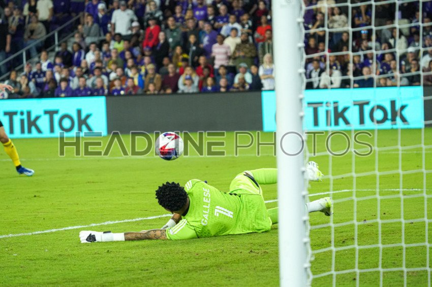 Orlando, Florida, USA, November 25, 2023, Orlando City SC goalkeeper Pedro Gallese #1 blocks the ball to make a save in the second half at Exploria Stadium. (Photo Credit: Marty Jean-Louis)