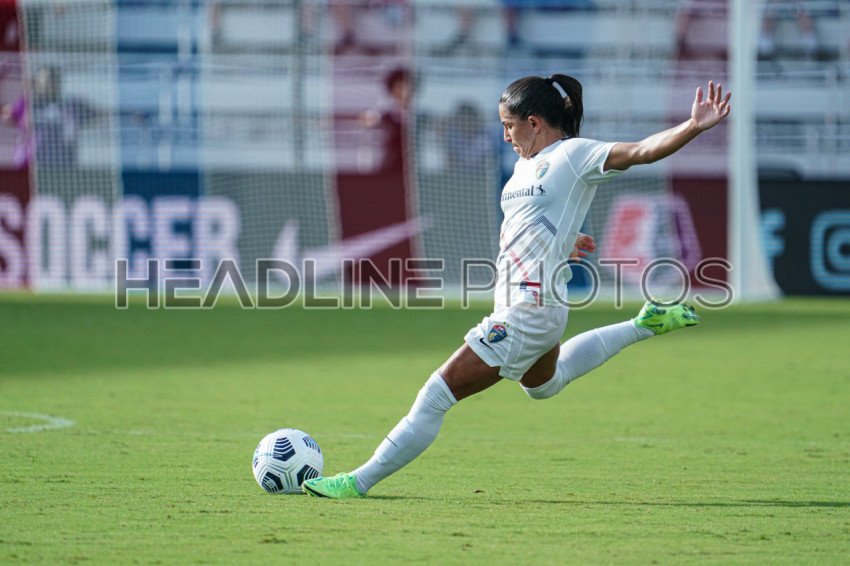 Orlando, Florida, USA, July 4, 2021, North Carolina Courage MIdfielder Debinha #10 makes a kick during the match at Exploria Stadium. (Photo Credit: Marty Jean-Louis)