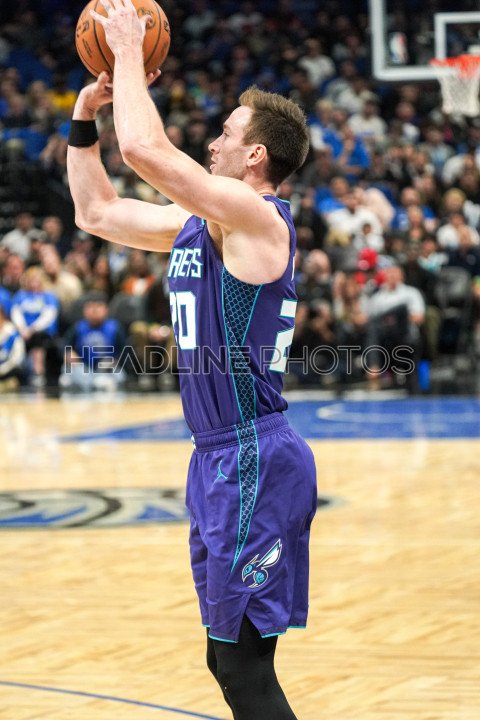 Orlando, Florida, USA, November 26, 2023, Charlotte Hornets forward Gordon Hayward #20 shoots a three in the second half at the Amway Center. (Photo Credit: Marty Jean-Louis)