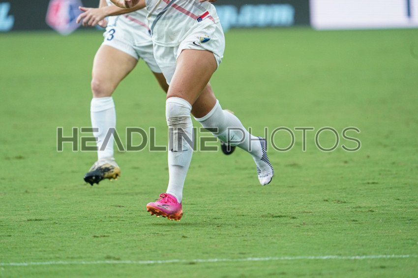 Orlando, Florida, USA, July 4, 2021, North Carolina Courage's Merrit Mathias #11 loses one of hear cleats during the match at Exploria Stadium. (Photo Credit: Marty Jean-Louis)