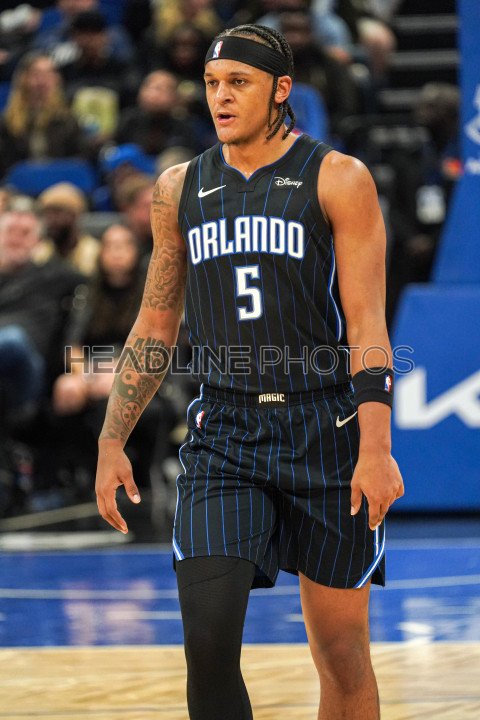Orlando, Florida, USA, November 29, 2023, Orlando Magic forward Paolo Banchero #5 runs forward during the first half at the Amway Center. (Photo Credit: Marty Jean-Louis)