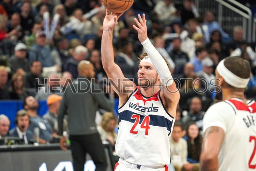 Orlando, Florida, USA, November 29, 2023, Washington Wizards guard Corey Kispert #24 shoots a free throw at the Amway Center. (Photo Credit: Marty Jean-Louis)