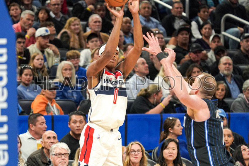 Orlando, Florida, USA, November 29, 2023, Washington Wizards guard Bilal Coulibaly #0 shoots a three at the Amway Center. (Photo Credit: Marty Jean-Louis)