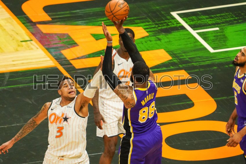 Orlando, Florida, USA, March 26, 2021, Los Angeles Lakers Power Forward Markieff Morris #88 takes a shot during the game against the Orlando Magic at the Amway Center (Photo Credit: Marty Jean-Louis)