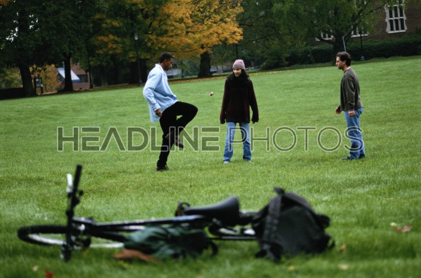Students Kicking Beanbag on Campus