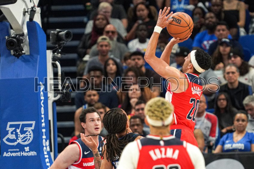 Orlando, Florida, USA, November 29, 2023, Washington Wizards guard Landry Shamet #20 takes a shot near the basket at the Amway Center. (Photo Credit: Marty Jean-Louis)
