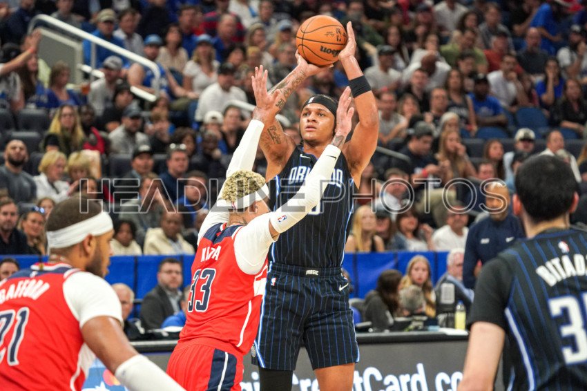 Orlando, Florida, USA, November 29, 2023, Orlando Magic forward Paolo Banchero #5 shoots a three at the Amway Center. (Photo Credit: Marty Jean-Louis)