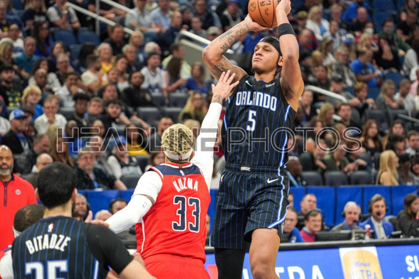 Orlando, Florida, USA, November 29, 2023, Orlando Magic forward Paolo Banchero #5 shoots a three at the Amway Center. (Photo Credit: Marty Jean-Louis)