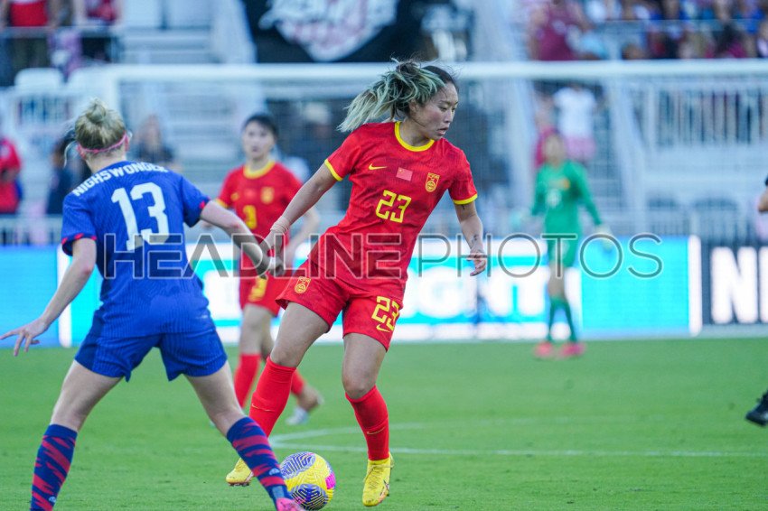 Fort Lauderdale, USA, December 2, 2023, China PR midfielder Tang Jiali #23 controls the ball in a friendly match at DRV PNK Stadium. (Photo Credit: Marty Jean-Louis)