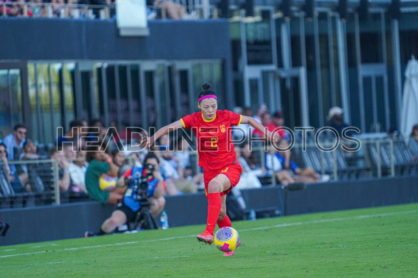 Fort Lauderdale, USA, December 2, 2023, China PR defender Li Mengwen #2 runs up field in a friendly match at DRV PNK Stadium. (Photo Credit: Marty Jean-Louis)