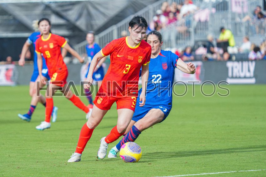 Fort Lauderdale, USA, December 2, 2023, China PR player Dou Jiaxing #3 in a friendly match at DRV PNK Stadium. (Photo Credit: Marty Jean-Louis)