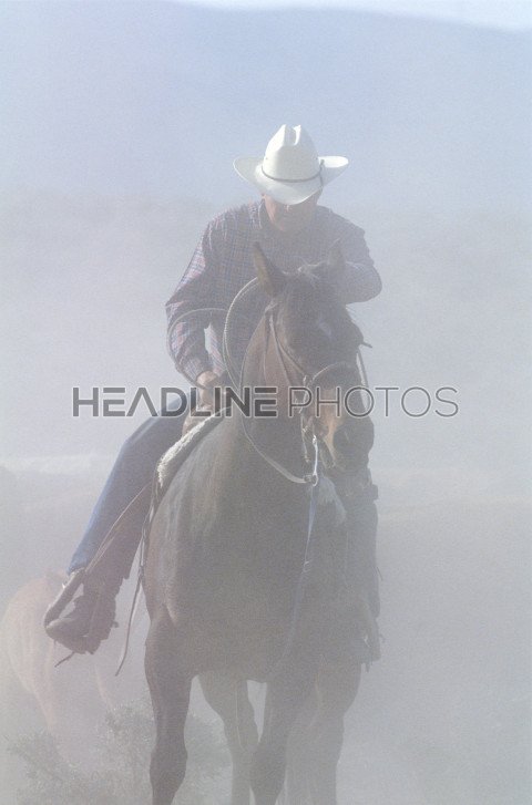 color image cowboy dawn domestic animals dust horizontal horse horse herder jockey lasso oregon us state photography ranchSimilar Photos