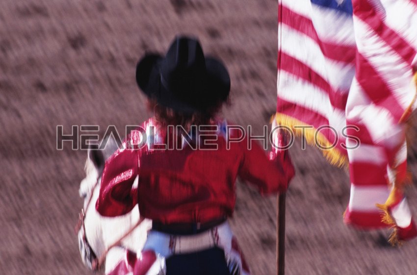 Cowgirl Carrying the American Flag at the Rodeo