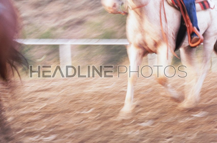 Running horse in field