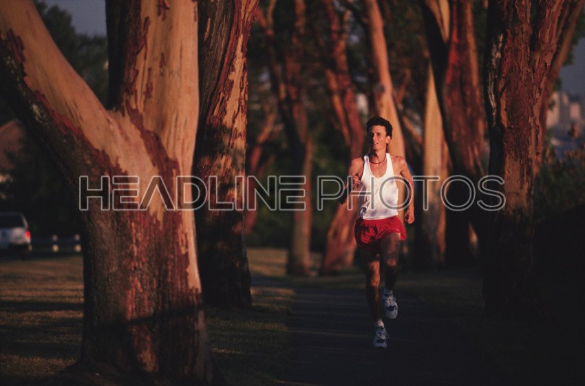 Male runner running on road on plain
