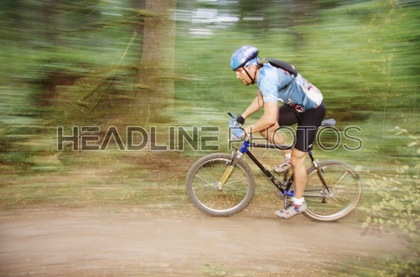 Cycling on sunrise forest trail