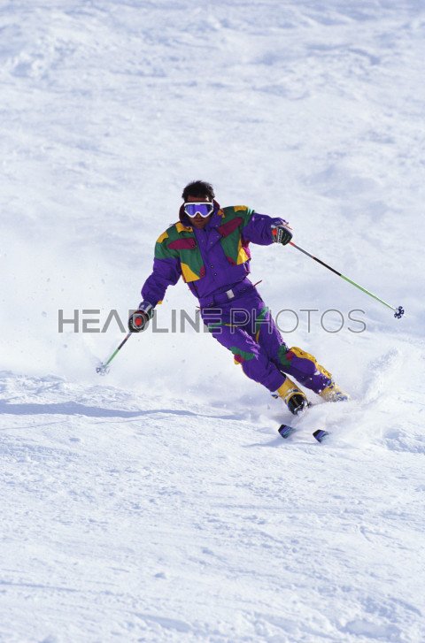 Alpine powder skier descending pristine slope