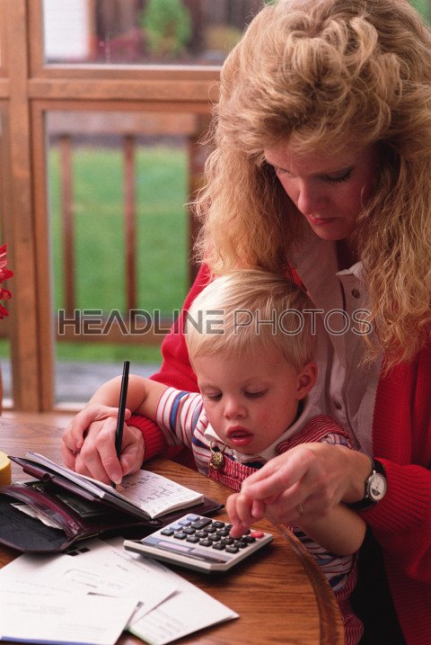 family close up multi tasking home office technology young adult indoors desk son laptop mother tattoo raising protection womanSimilar Photos