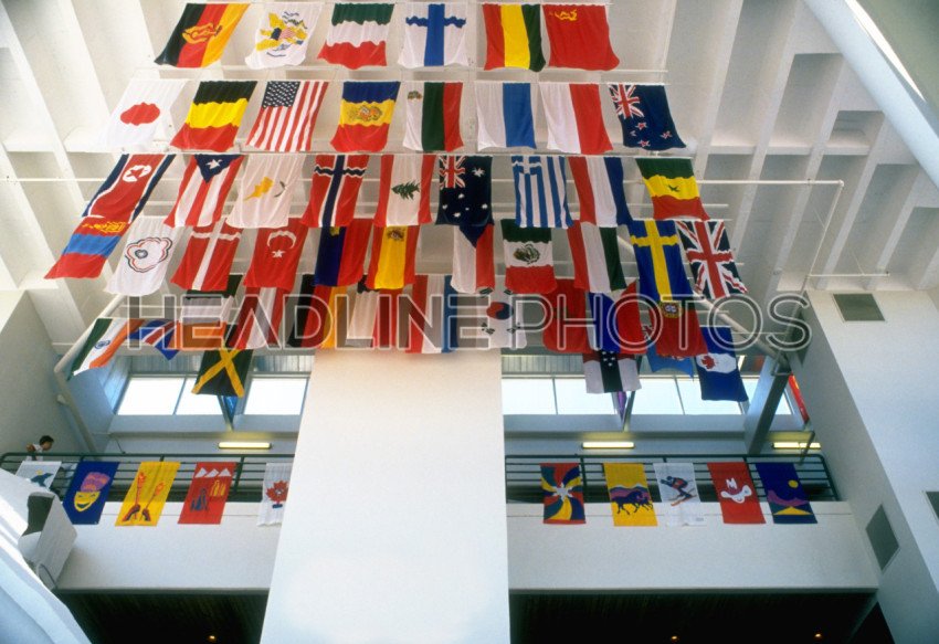 Display of flags from many countries around the world at Boeing Future of Flight in Everett