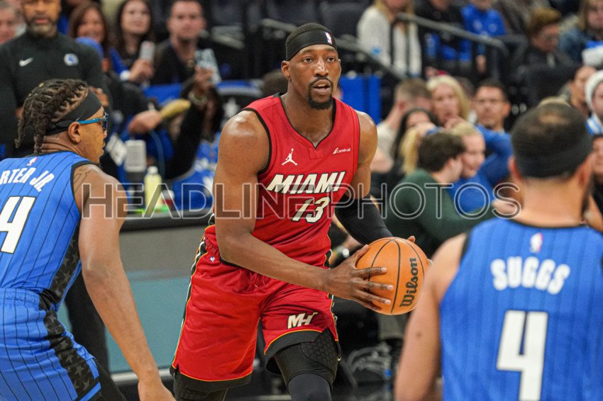 Orlando, Florida, USA, December 20, 2023, Miami Heat center Bam Adebayo #13 look to make a pass during the game at the Amway Center. (Photo Credit: Marty Jean-Louis)