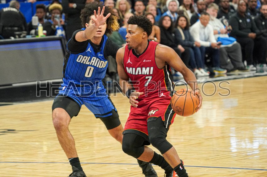 Orlando, Florida, USA, December 20, 2023, Miami Heat guard Kyle Lowry #7 runs pass Anthony Black #0 at the Amway Center. (Photo Credit: Marty Jean-Louis)