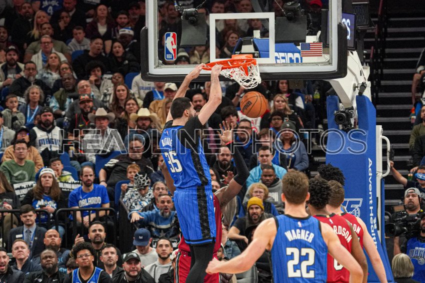 Orlando, Florida, USA, December 20, 2023, Orlando Magic center Goga Bitadze #35 makes a dunk in the first half at the Amway Center. (Photo Credit: Marty Jean-Louis)