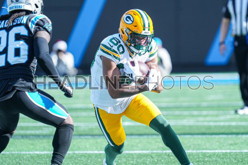 Charlotte, North Carolina, USA, December 24, 2023, Green Bay Packers Wide receiver Bo Melton #80 makes a run in the first half at Bank of America Stadium. (Photo Credit: Marty Jean-Louis)