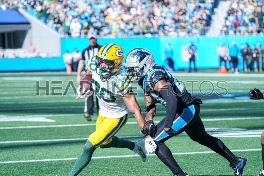 Charlotte, North Carolina, USA, December 24, 2023, Green Bay Packers wide receiver Bo Melton #80 makes a run during the game at Bank of America Stadium. (Photo Credit: Marty Jean-Louis)