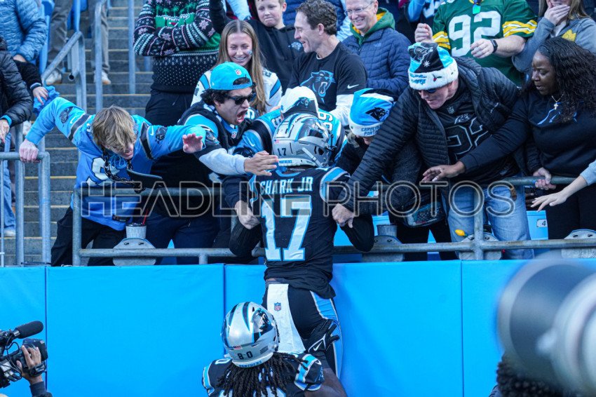 Charlotte, North Carolina, USA, December 24, 2023, Green Bay Packers face Carolina Panthers player DJ Chark Jr #17 celebrate with the crowd after making a touchdown in the second half at Bank of America Stadium. (Photo Credit: Marty Jean-Louis)