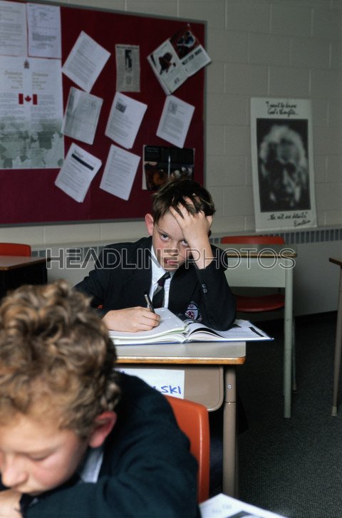 student boredom boys chinese ethnicity classroom frustration depression sadness education school building hong kong school children studying uniform writing activity desk elementary school working learningSimilar Photos
