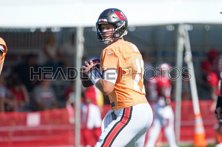 Tampa, Florida, USA, August 19, 2021, Tampa Bay Buccaneers Quaterback Tom Brady #12 readies to make a throw during Training Camp at AdventHealth Training Center\n. (Photo Credit: Marty Jean-Louis)
