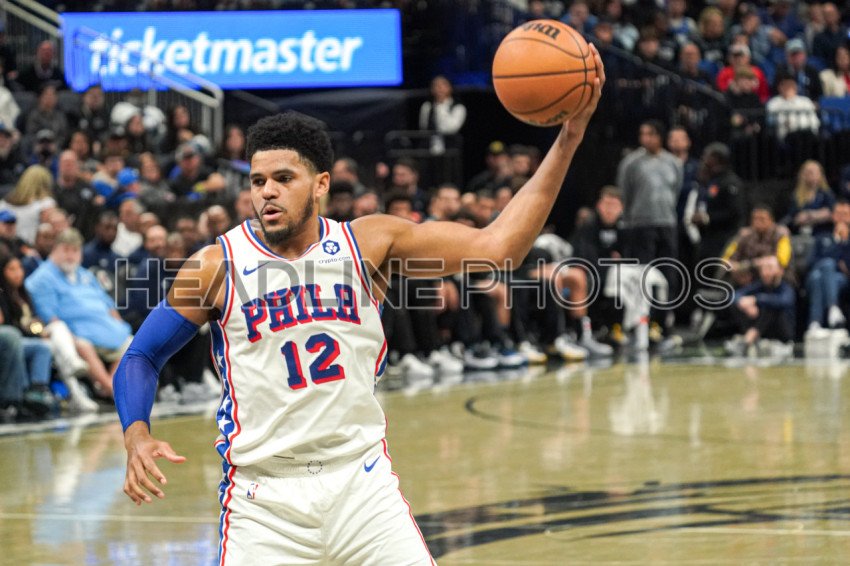 Orlando, Florida, USA, December 27, 2023, Philadelphia 76ers player Tobias Harris #12 receives a pass in the second quarter at the Amway Center. (Photo Credit: Marty Jean-Louis)