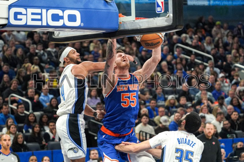 Orlando, Florida, USA, December 29, 2023, New York Knicks center Isaiah Hartenstein #55 makes a dunk in the first half at the Amway Center. (Photo Credit: Marty Jean-Louis)