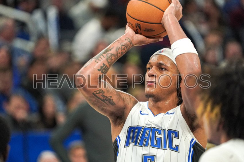 Orlando, Florida, USA, December 29, 2023, Orlando Magic forward Paolo Banchero #5 shoots a free throw in the third half at the Amway Center. (Photo Credit: Marty Jean-Louis)