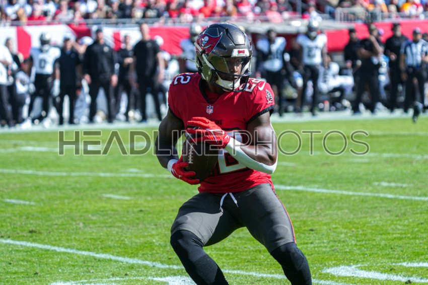 Tampa Bay, Florida, USA, December 31, 2023, Tampa Bay Buccaneers running back Chase Edmonds #22 receives a pass at Raymond James Stadium. (Photo Credit: Marty Jean-Louis)