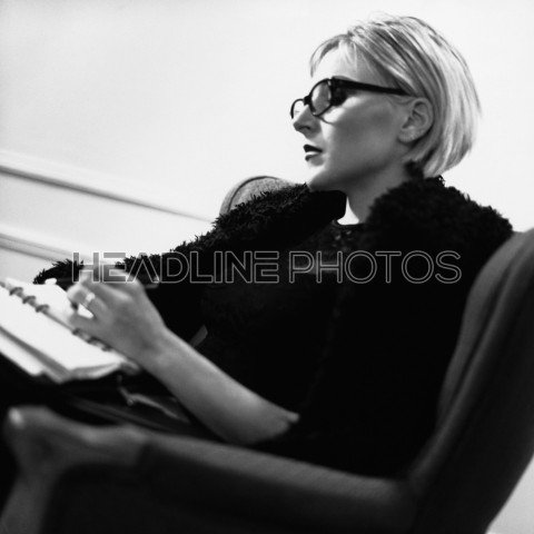 Close-up of a woman writing on a white blank notebook sitting on a window, blurred focus.