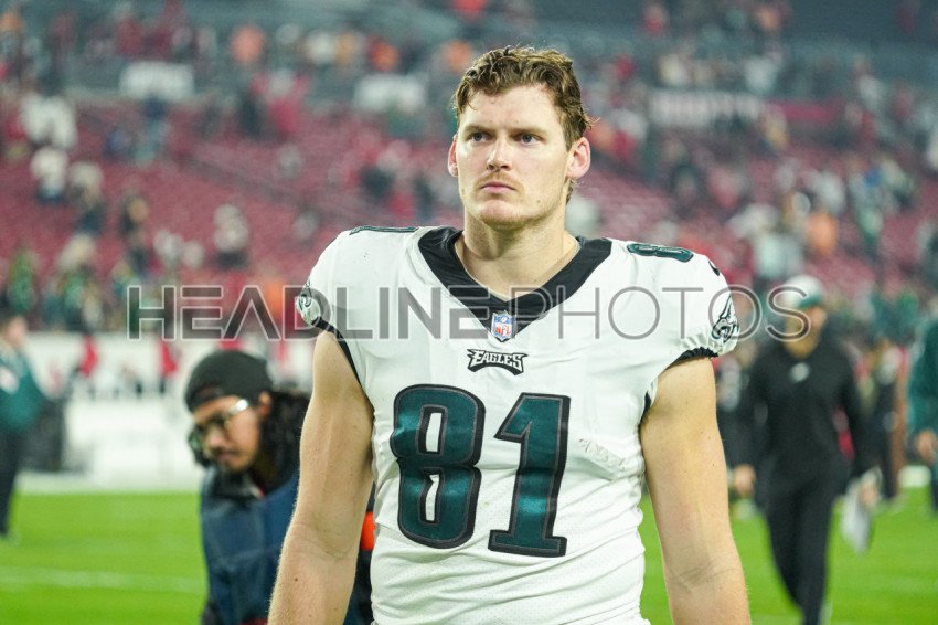 Tampa Bay, Florida, USA, January 15, 2024, Philadelphia Eagles player Grant Calcaterra #81 at Raymond James Stadium. (Photo Credit: Marty Jean-Louis)