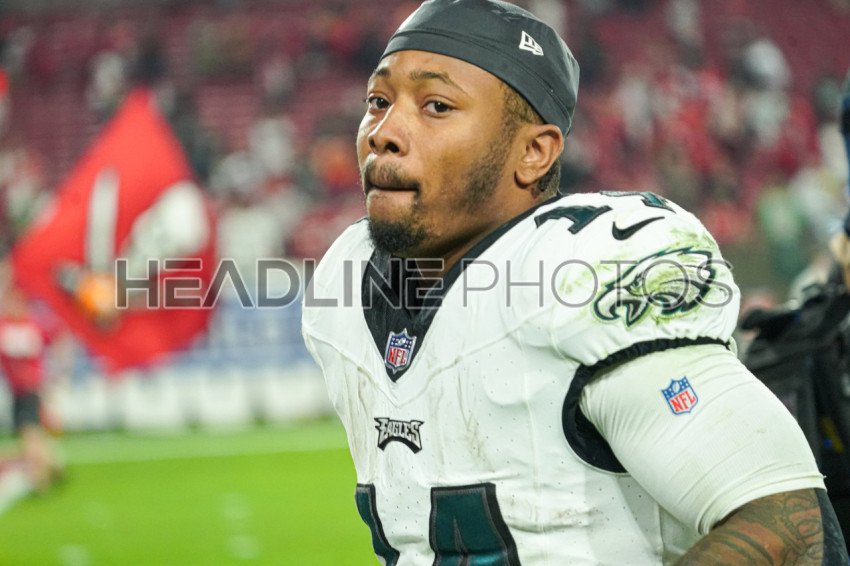 Tampa Bay, Florida, USA, January 15, 2024, Philadelphia Eagles player Kenneth Gainwell E14 at Raymond James Stadium. (Photo Credit: Marty Jean-Louis)