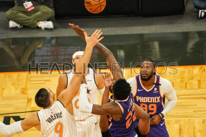 Orlando, Florida, USA, March 23, 2021, starting tip off between the Phoenix Suns and the Orlando Magic at the Amway Center (Photo Credit: Marty Jean-Louis)